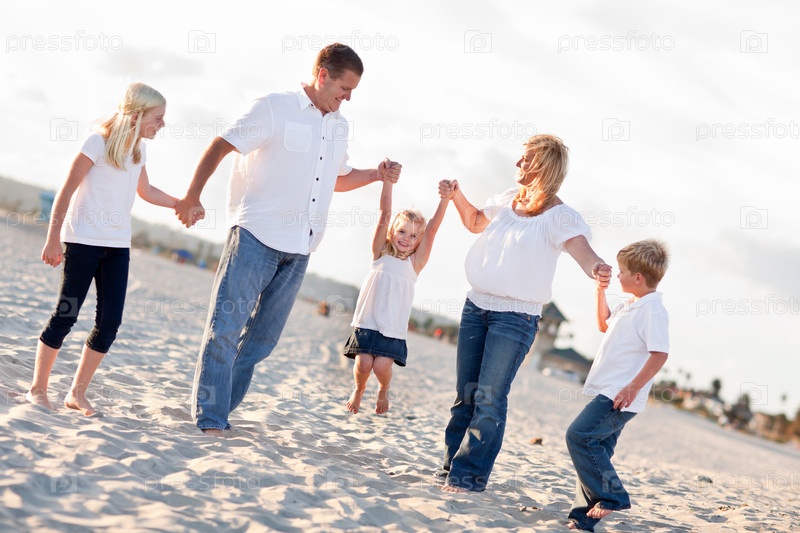 Счастливая семья на пляже