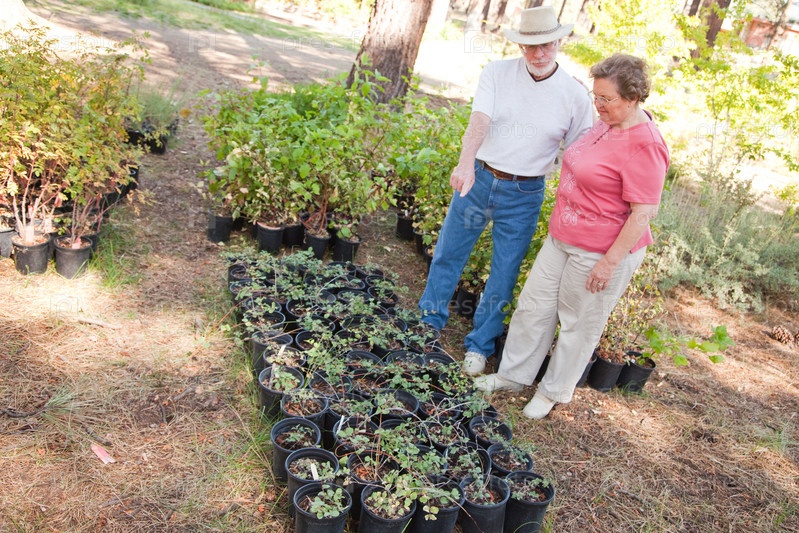 Привлекательная пожилая пара смотрит на комнатные растения