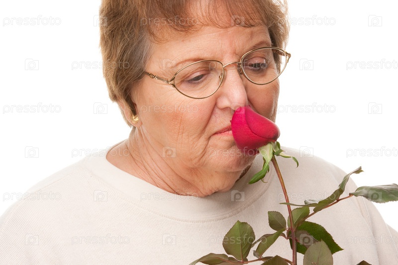 Привлекательная пожилая женщина с красной розой