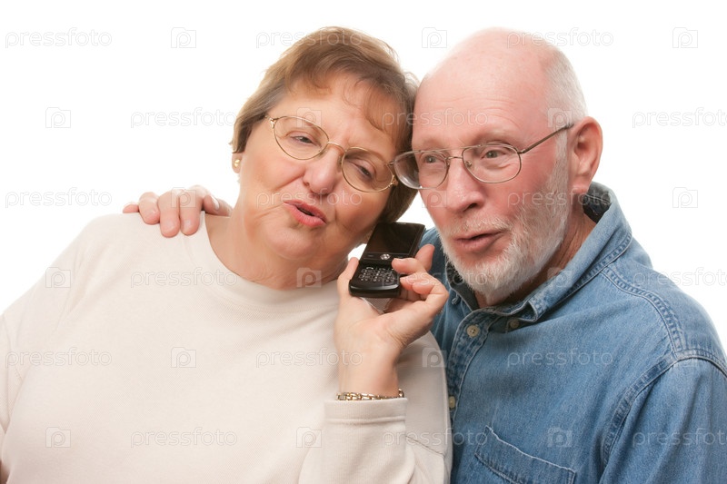 Счастливая пожилая пара с мобильным телефоном