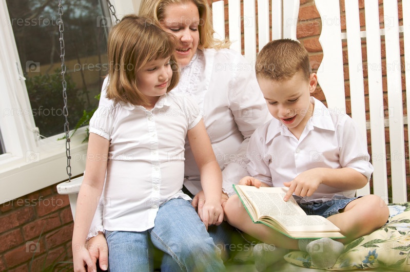 Мальчик читает маме и сестре