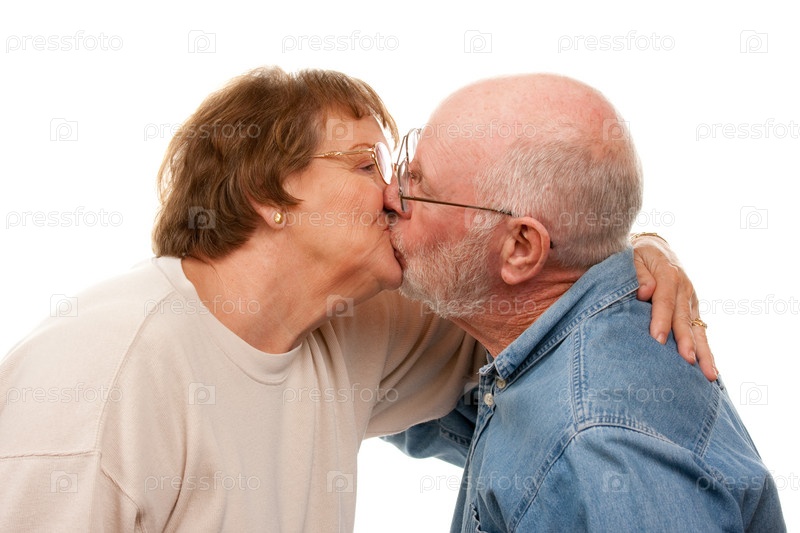 Ласковая целующаяся пожилая пара