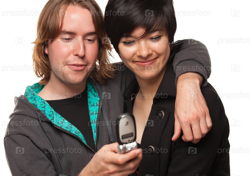 Пара разных национальностей с мобильным телефоном