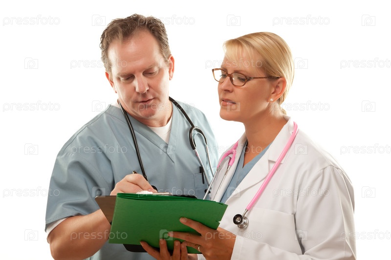 Мужчина и женщина-врач смотрят в документы