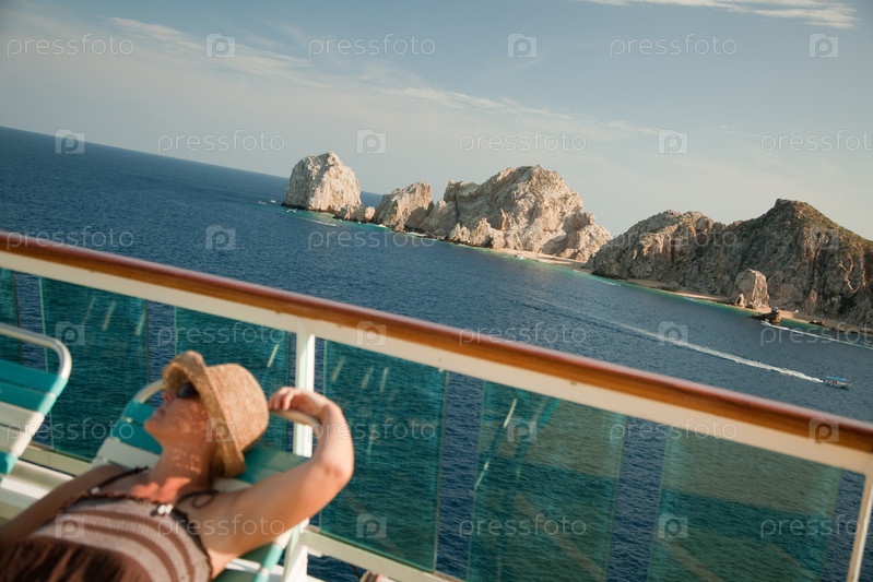 Красивая женщина расслабляется на палубе круизного корабля