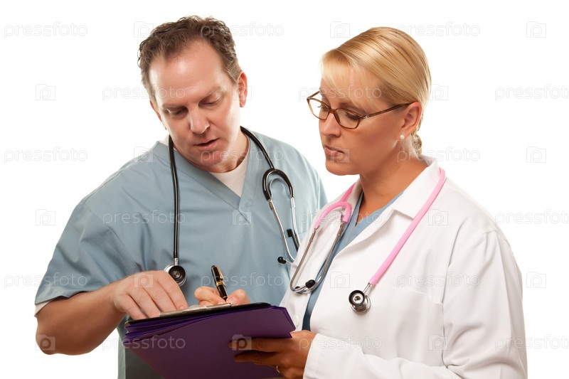 Мужчина и женщина-врач смотрят в документы
