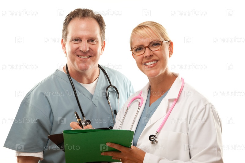 Мужчина и женщина-врач смотрят в документы
