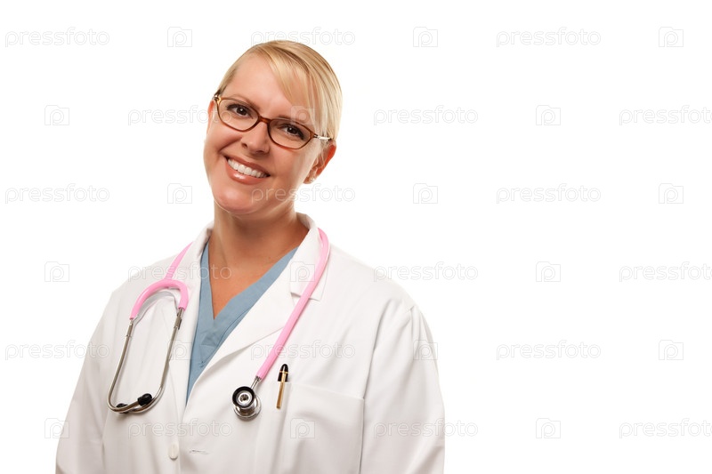 Приветливая белокурая женщина-врач