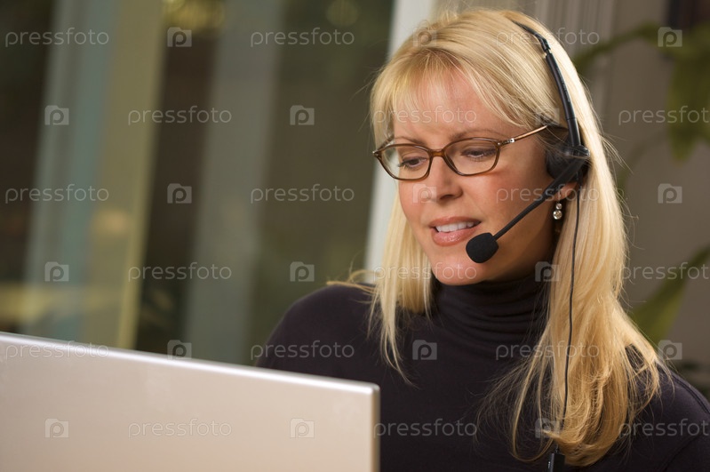 Привлекательная бизнес-леди с телефонной гарнитурой