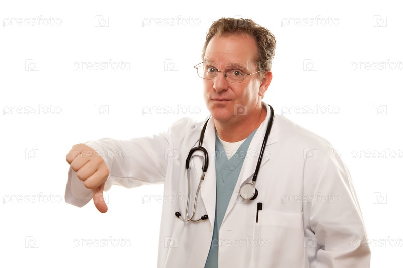 Мужской доктор показывает большим пальцем вниз