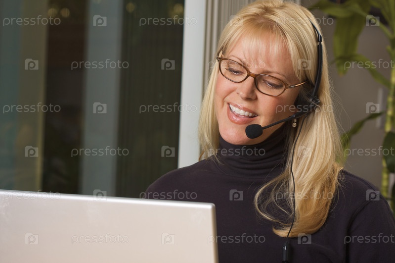 Привлекательная бизнес-леди с гарнитурой