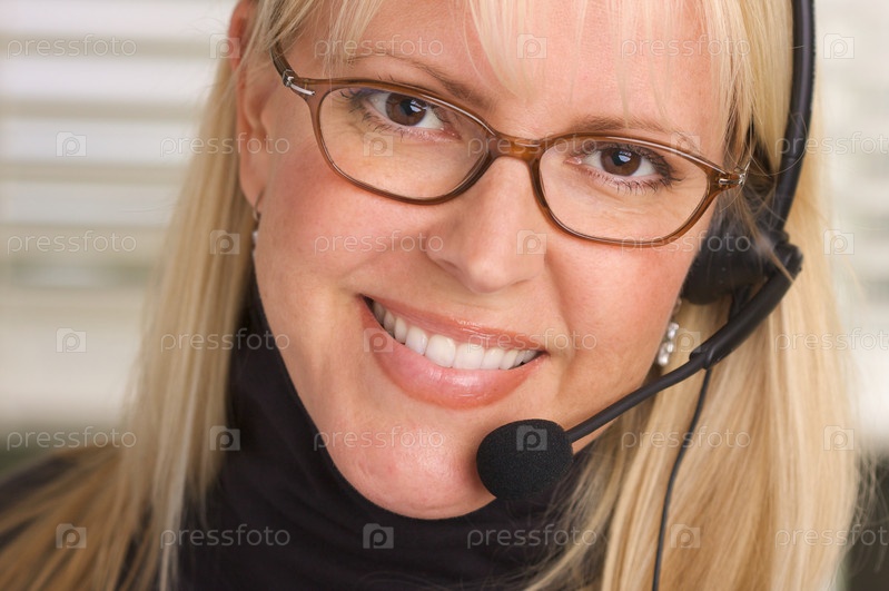 Привлекательная бизнес-леди с гарнитурой