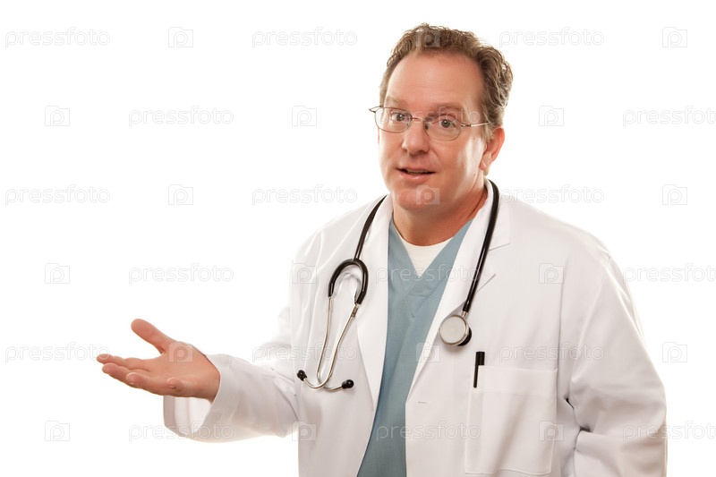 Доктор с озабоченным взглядом на белом фоне