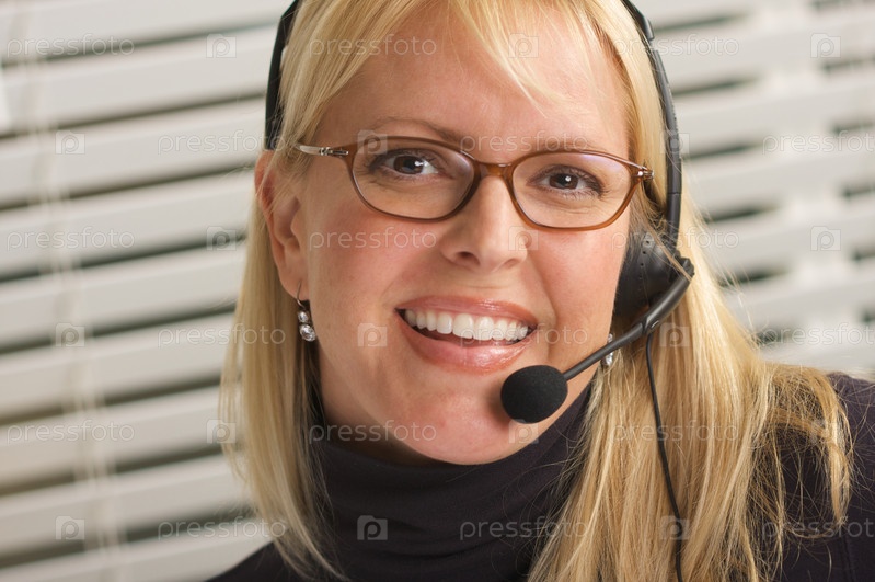 Привлекательная бизнес-леди с телефонной гарнитурой