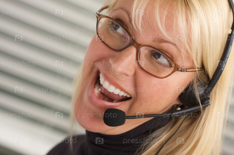 Привлекательная бизнес-леди с телефонной гарнитурой