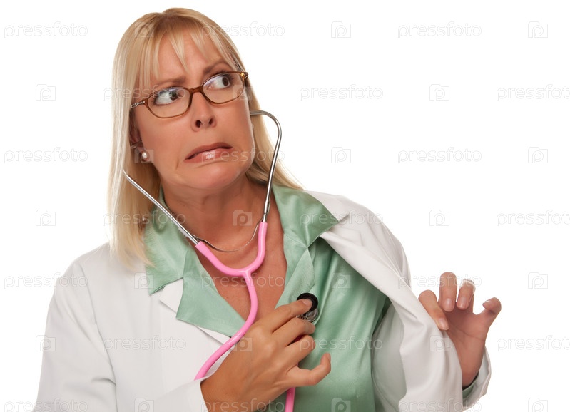 Девушка-врач или медсестра проверяет свое собственное сердце