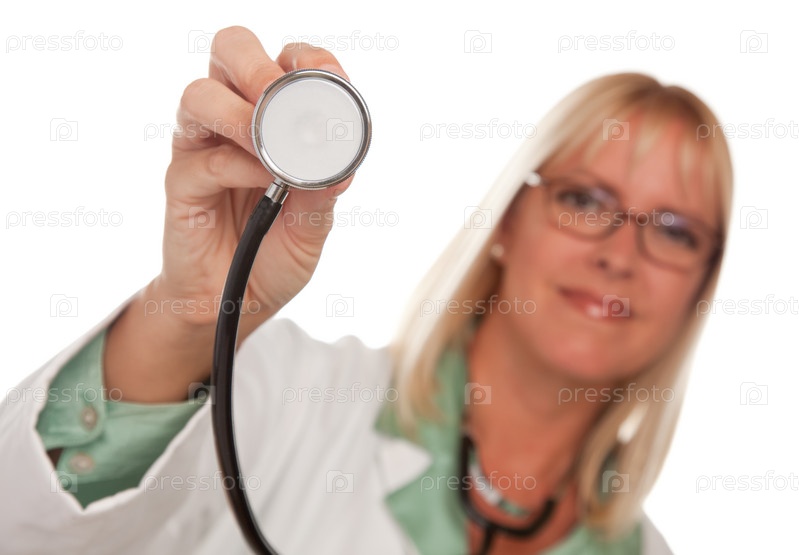 Привлекательная девушка-врач держит стетоскоп