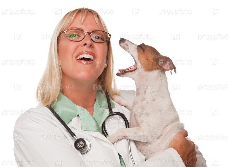 Привлекательная женщина-ветеринар со щенком