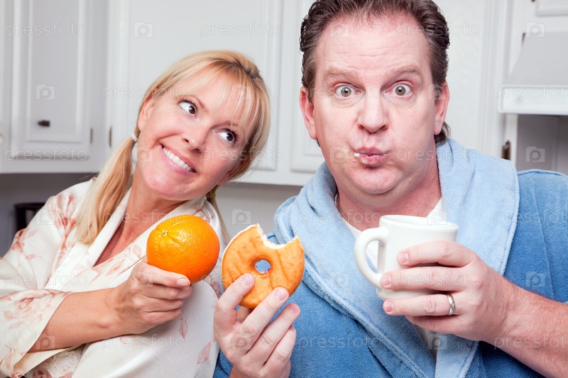 Выбор между пончиком и фруктом, здоровое питание