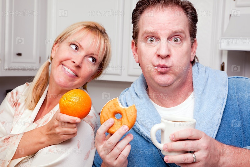 Выбор между пончиком и фруктом, здоровое питание