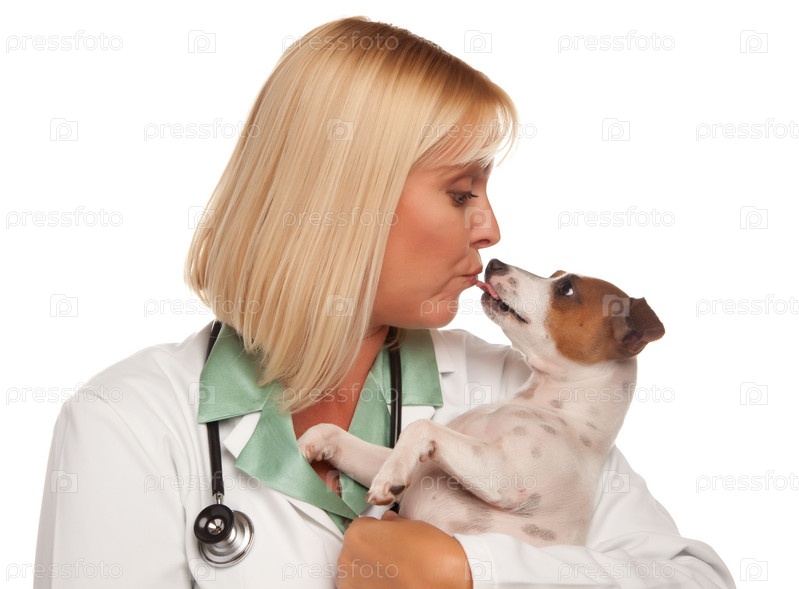 Привлекательная женщина-ветеринар с небольшим щенком