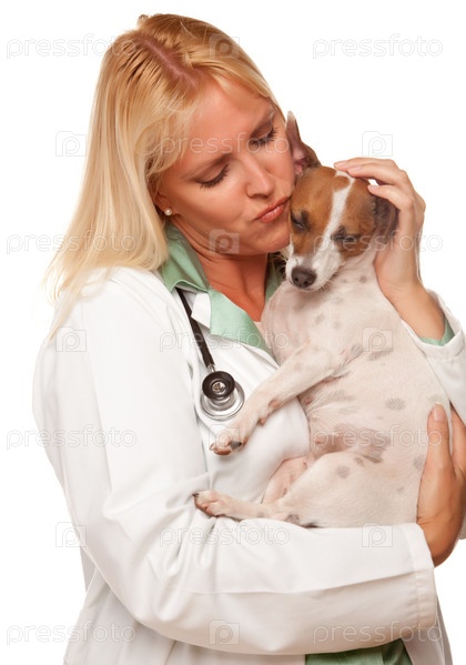 Привлекательная женщина-ветеринар с небольшим щенком