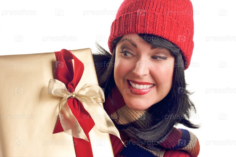 Привлекательная женщина с подарком в руках