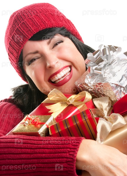 Привлекательная женщина держит подарок