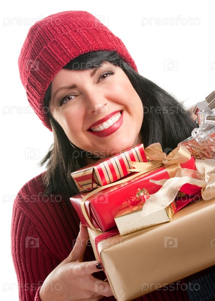 Привлекательная женщина держит подарок