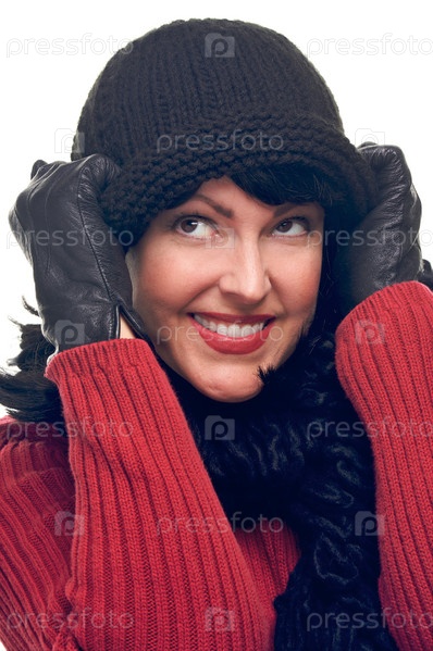 Привлекательная женщина держит шапку