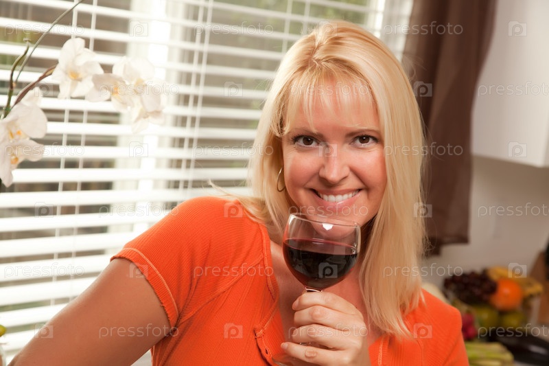 Привлекательная блондинка с бокалом вина