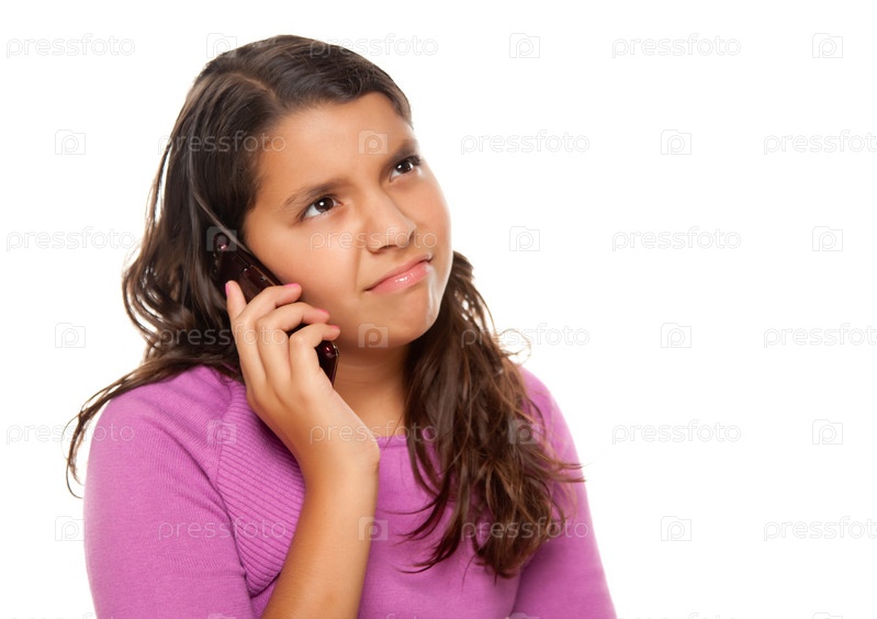 Хмурая латиноамериканская девочка с мобильным телефоном