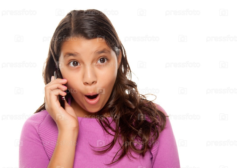 Шокированная латиноамериканская девочка с мобильным телефоном