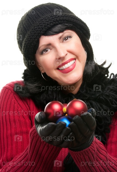 Привлекательная женщина держит рождественские украшения