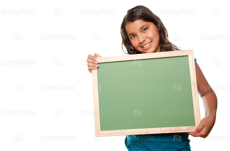 Симпатичная испанская девочка держит пустую доску