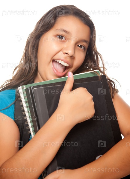 Симпатичная латиноамериканская девочка с книгами и рюкзаком