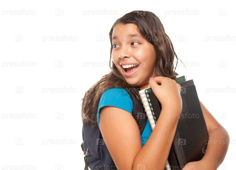 Симпатичная латиноамериканская девочка с книгами и рюкзаком