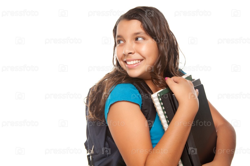 Симпатичная латиноамериканская девочка с книгами и рюкзаком