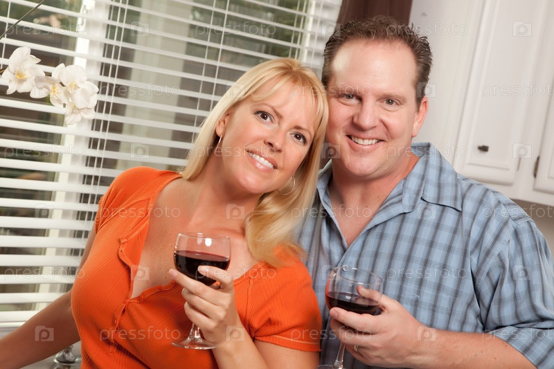 Счастливая пара пьет вино