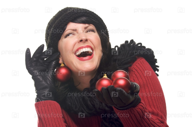 Привлекательная женщина с новогодними украшениями в руках
