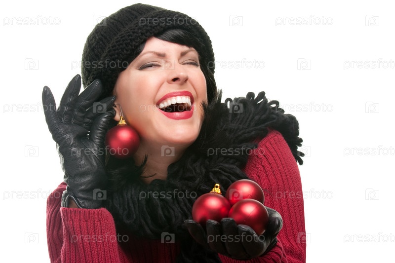 Привлекательная женщина с новогодними украшениями в руках