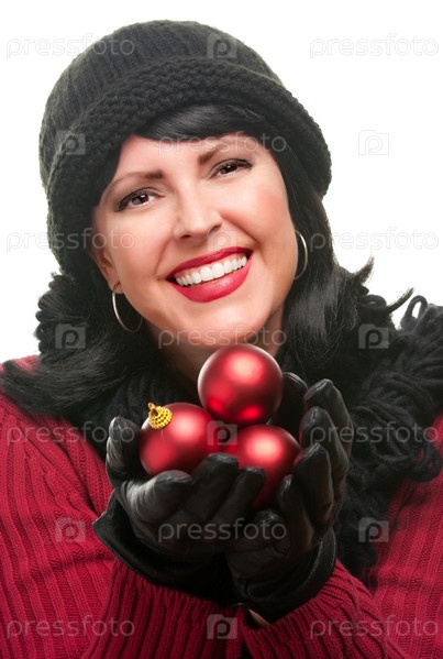Привлекательная женщина с новогодними украшениями в руках