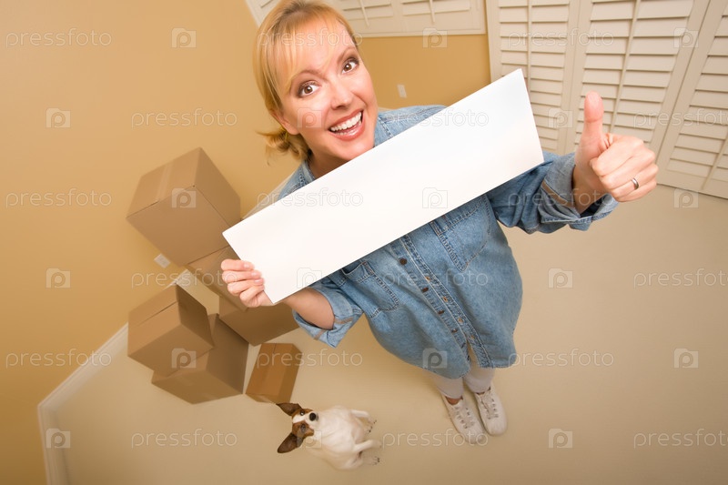 Женщина с пустым баннером в руках