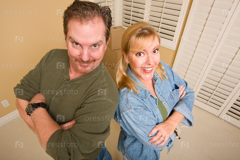 Тупая пара и коробки для переезда в пустой комнате