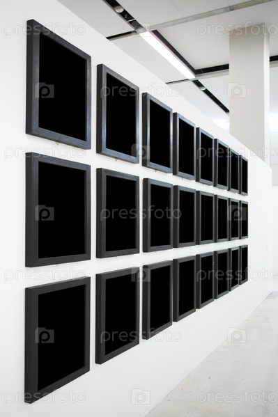 Стены в музее с чёрными пустыми рамками