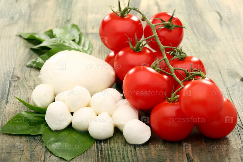 Помидоры, моцарелла и базилик