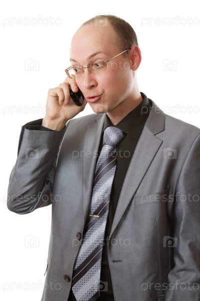 Успешный бизнес с мобильным телефоном на белом фоне