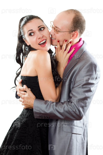 Влюбленная пара - муж и жена на белом фоне