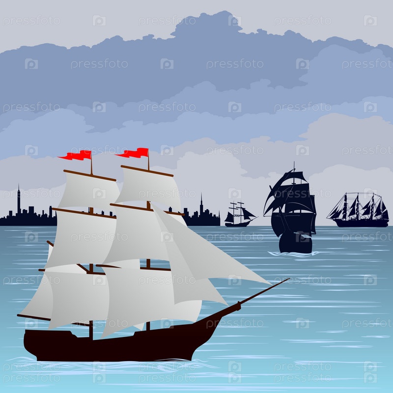 Парусные корабли на море