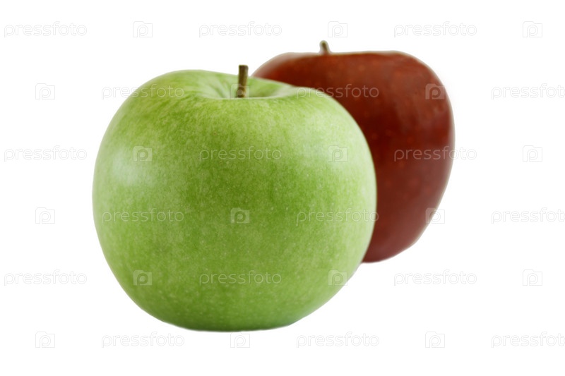 Зеленое и красное яблоко на белом фоне